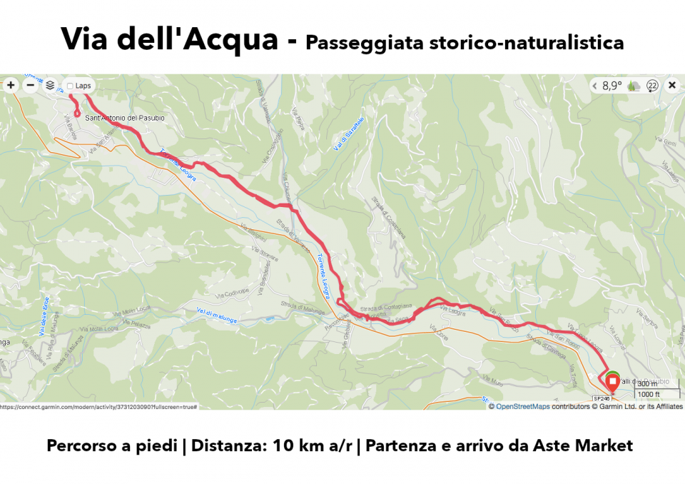 Tra in più noti e caratteristici la Via dell'Acqua. Facile percorso di circa 10 km (andata e ritorno) da percorrere a piedi adatto anche a famiglie. Lungo il percorso sono presenti luoghi storici come la Segheria, visitabile la domenica. Una zona picnic permette di trascorrere una piacevole sosta pranzo.